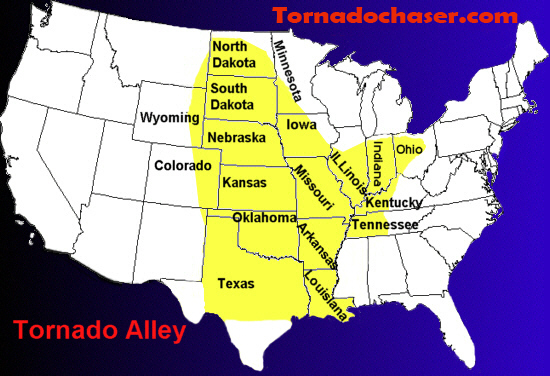 Tornado alley is where tornadoes spawn or form the most so if your in tornado alley please watch out for tornadoes and also Large Hail and some tornadoes can do a lot of damage or they can do normal damage Also if you have a tornado shelter or a basement please use that don’t try to hide in a obvious spot where tornadoes can pick you up from the ground